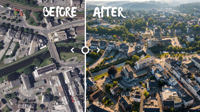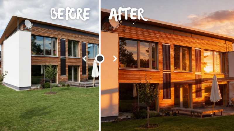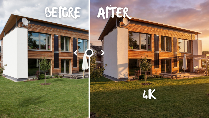 Nutze den Wow-Effekt und verwandle einfache, unscheinbare Bilder in professionelle Aufnahmen mit echter Wirkung. Ob Google-Maps-Screenshot oder Außenaufnahme einer Immobilie – verleihe jedem Bild das gewisse Etwas.