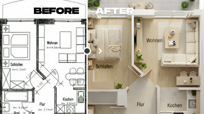 Jede Umwandlung – vom 2D-Grundriss zur 3D-Visualisierung, vom Foto zum digitalen Staging oder zur optimierten Darstellung – wird einfach in Coins abgerechnet.